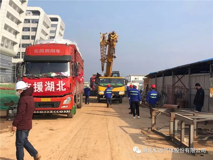 1月30日,黃岡市大量確診病人被轉移至大別山醫(yī)院,瓶裝醫(yī)用氧面臨供應危機,鄭正鵬立刻再次聯(lián)系院方溝通儲罐供氣一事,最終確定將瓶裝供氣模式更改為儲罐供氣,出于對和遠氣體的信任,院方委托和遠建設現(xiàn)場氣站,并要求盡快完成氣站建設,并投入使用。