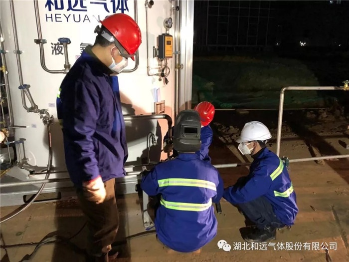 天已微亮,在大別山醫(yī)院附近的酒店休息了4-5個小時之后,周軍和劉淼帶領6名施工人員從2月2日上午9點開始繼續(xù)奮戰(zhàn)12個小時,直至2月2日晚上9點,終于如期完成黃岡大別山醫(yī)院氣站建設并投入使用。