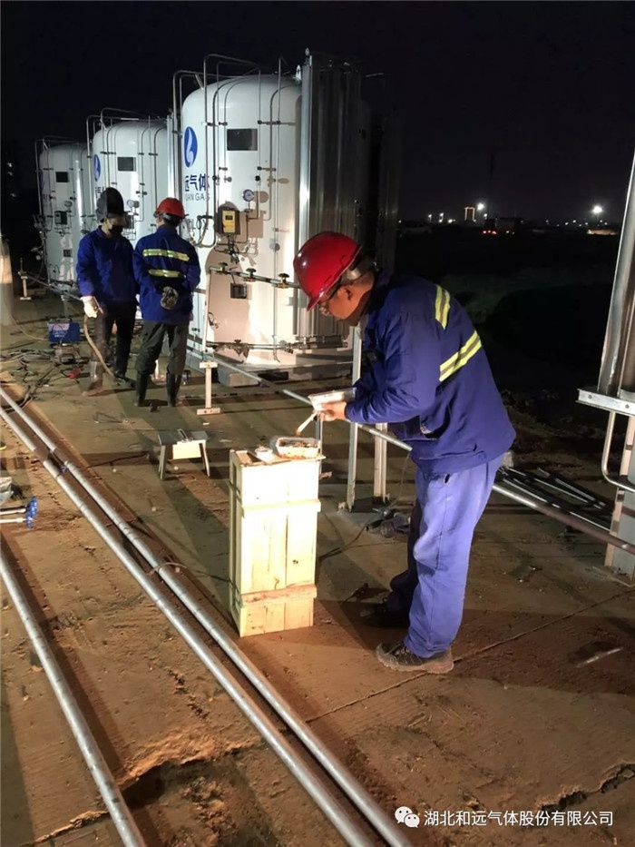 2月1日上午10點,隨著大別山醫(yī)院醫(yī)用氧站的建設材料全部到達,技術主管周軍和黃石和遠安全員劉淼帶領項目施工人員立即開始施工,他們連續(xù)工作18個小時沒有休息,直至2月2日凌晨4點。