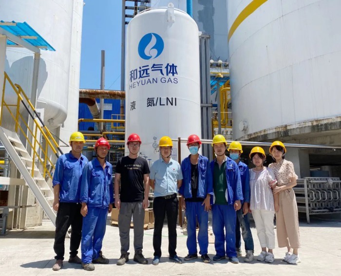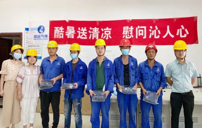 潛江項(xiàng)目投產(chǎn)在即,時(shí)間緊、任務(wù)重,壓力大,受公司黨支部委托,和遠(yuǎn)氣體黨支部組織委員向松庭一行前往潛江和遠(yuǎn)15000空分及年產(chǎn)7萬噸食品級液氮項(xiàng)目現(xiàn)場,為在高溫下堅(jiān)守一線的工作人員送去組織的關(guān)心。