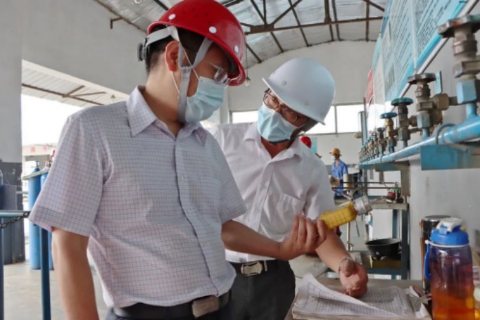 疫情過后,十堰和遠(yuǎn)生產(chǎn)物流出現(xiàn)逆勢增長,生產(chǎn)部員工不畏高溫,克服人員階段性缺口較大困難,每天加班加點(diǎn),5至7月總銷售量比去年同期增長了25.95%。李欣弈一行一到十堰和遠(yuǎn),直赴充裝車間、鋼瓶檢驗(yàn)站等生產(chǎn)一線,代表公司對大家堅(jiān)守崗位,戰(zhàn)酷暑、穩(wěn)生產(chǎn)的擔(dān)當(dāng)奉獻(xiàn)精神表示感謝。