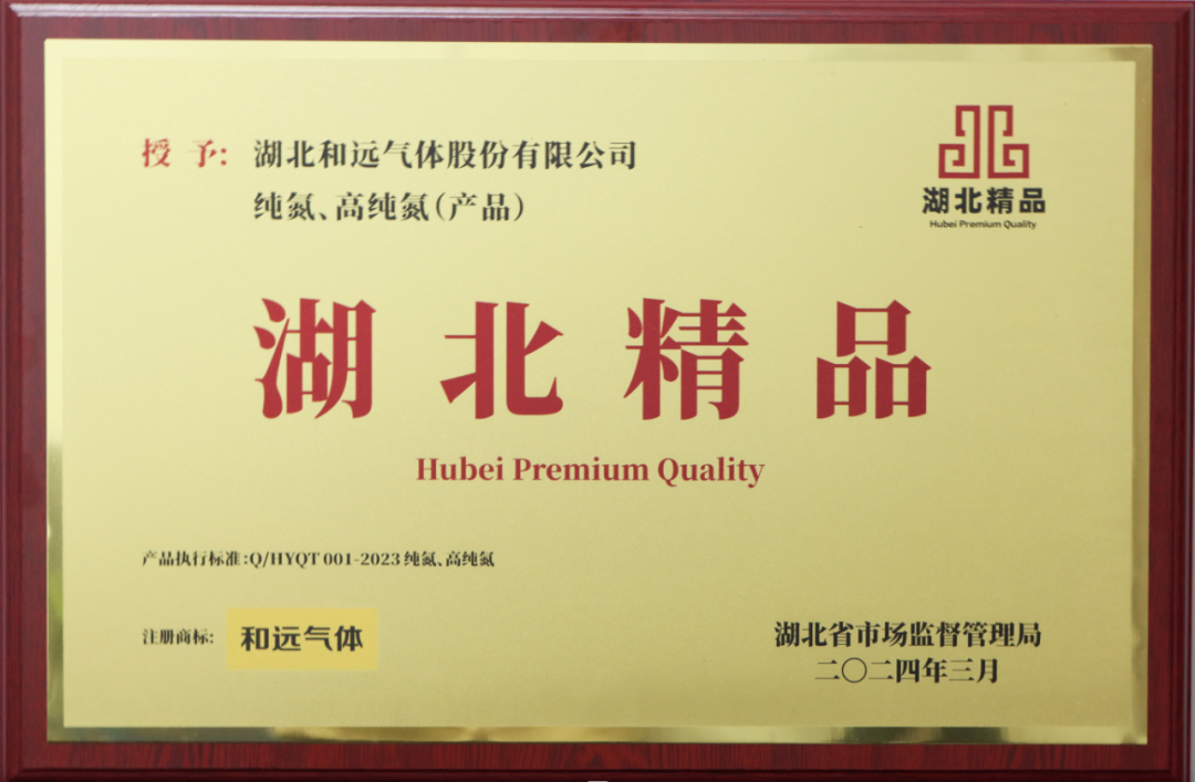 和遠(yuǎn)氣體純氮、高純氮產(chǎn)品獲得首屆“湖北精品”認(rèn)定